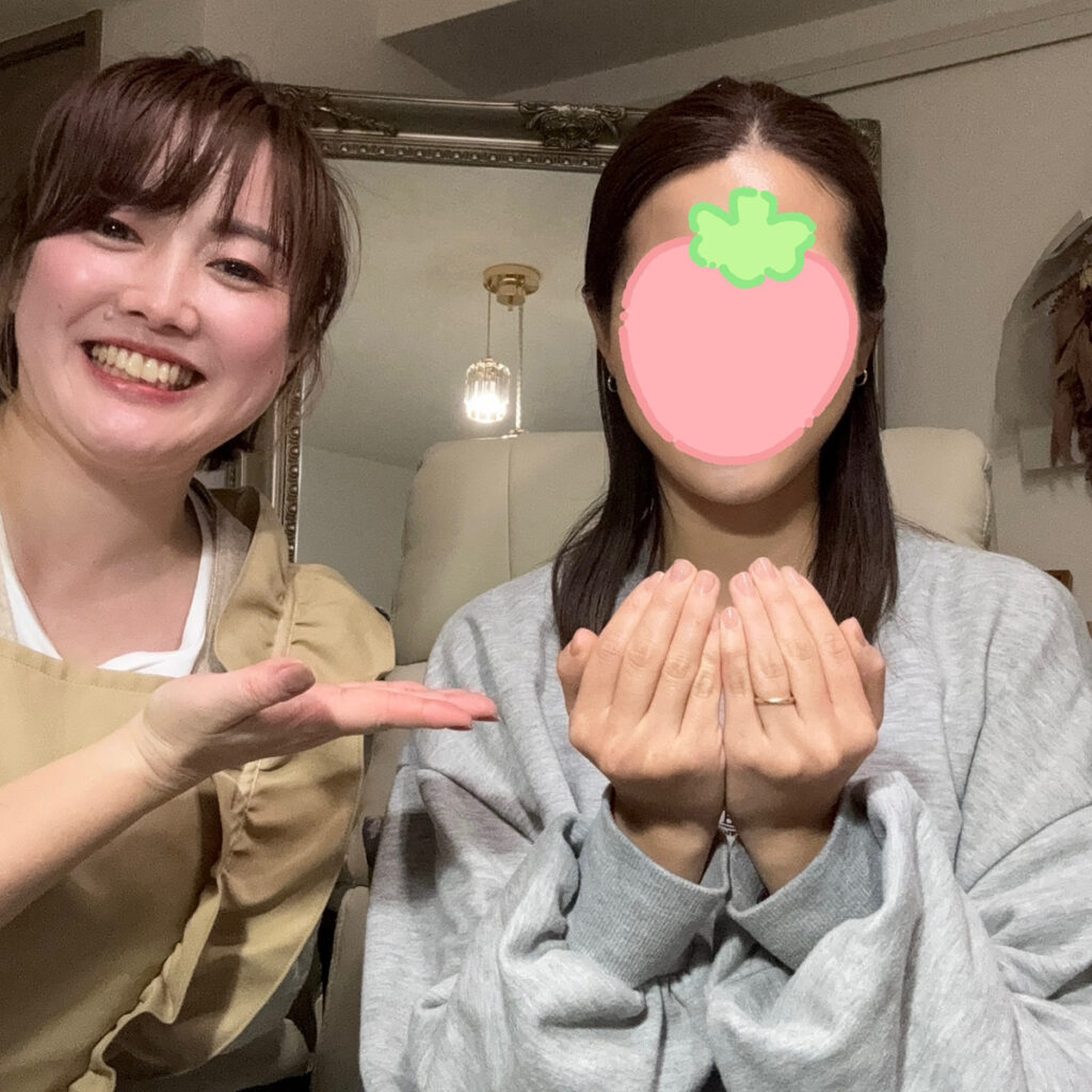 ですが、1回の施術で見違えるほど綺麗になって驚きました。何度も指先を見て、嬉しい気持ちになりました。
